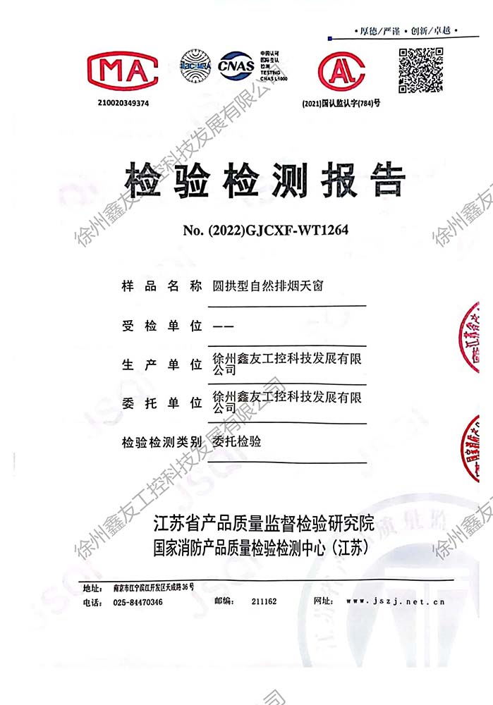 圆拱型电动排烟天窗检测报告190